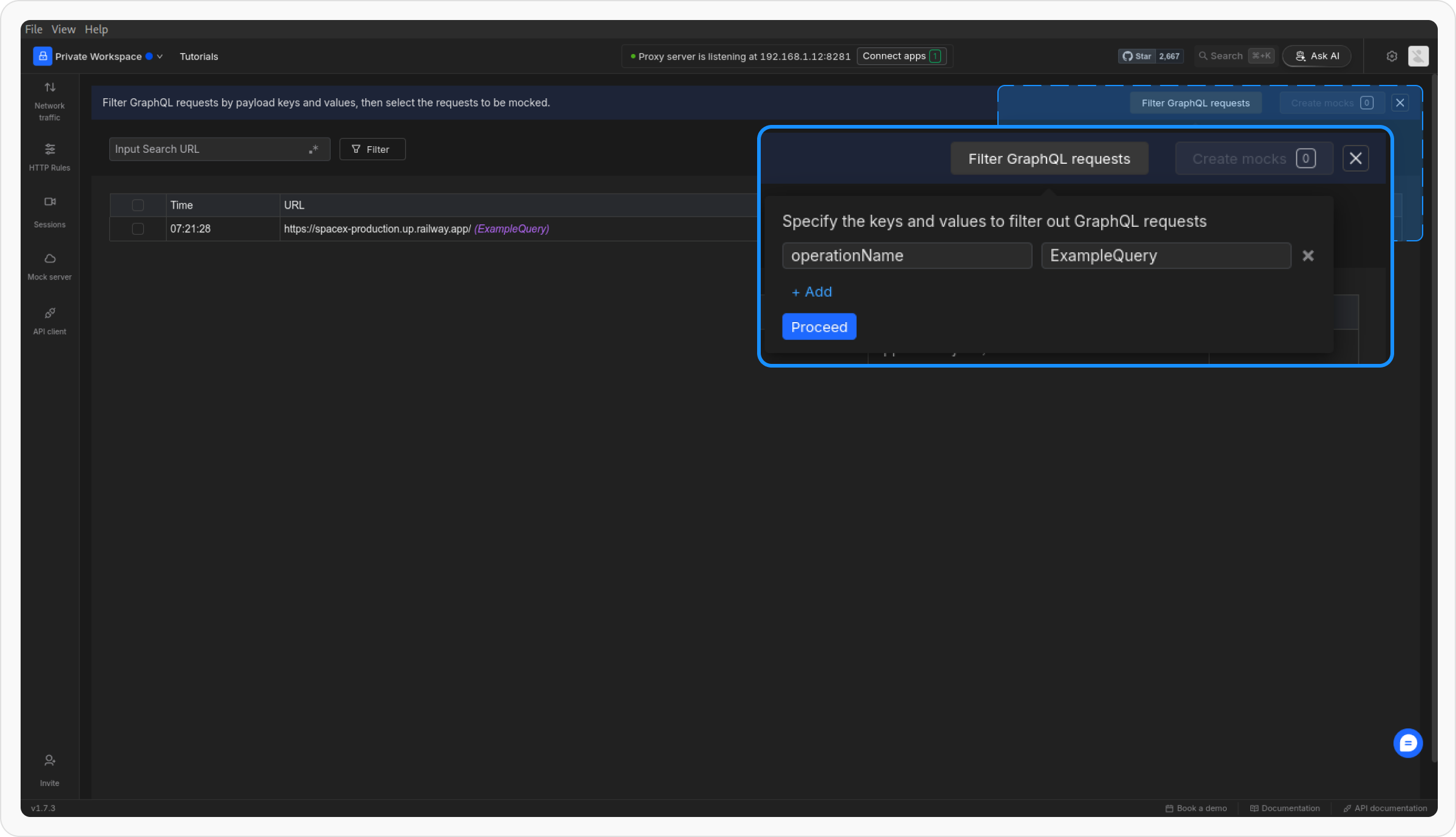Once you’ve recorded an API session, you can easily generate bulk mock rules based on the captured requests. This is a quick way to mock multiple API endpoints without manually configuring each one.1