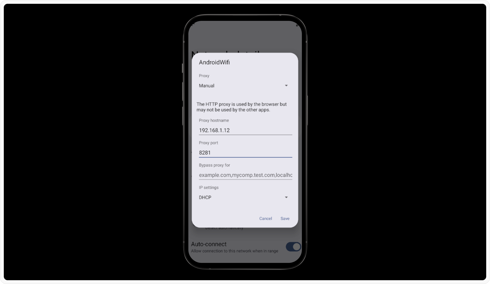 Proxy Hostname: Use the IP shown in the Requestly Desktop App (e.g.,