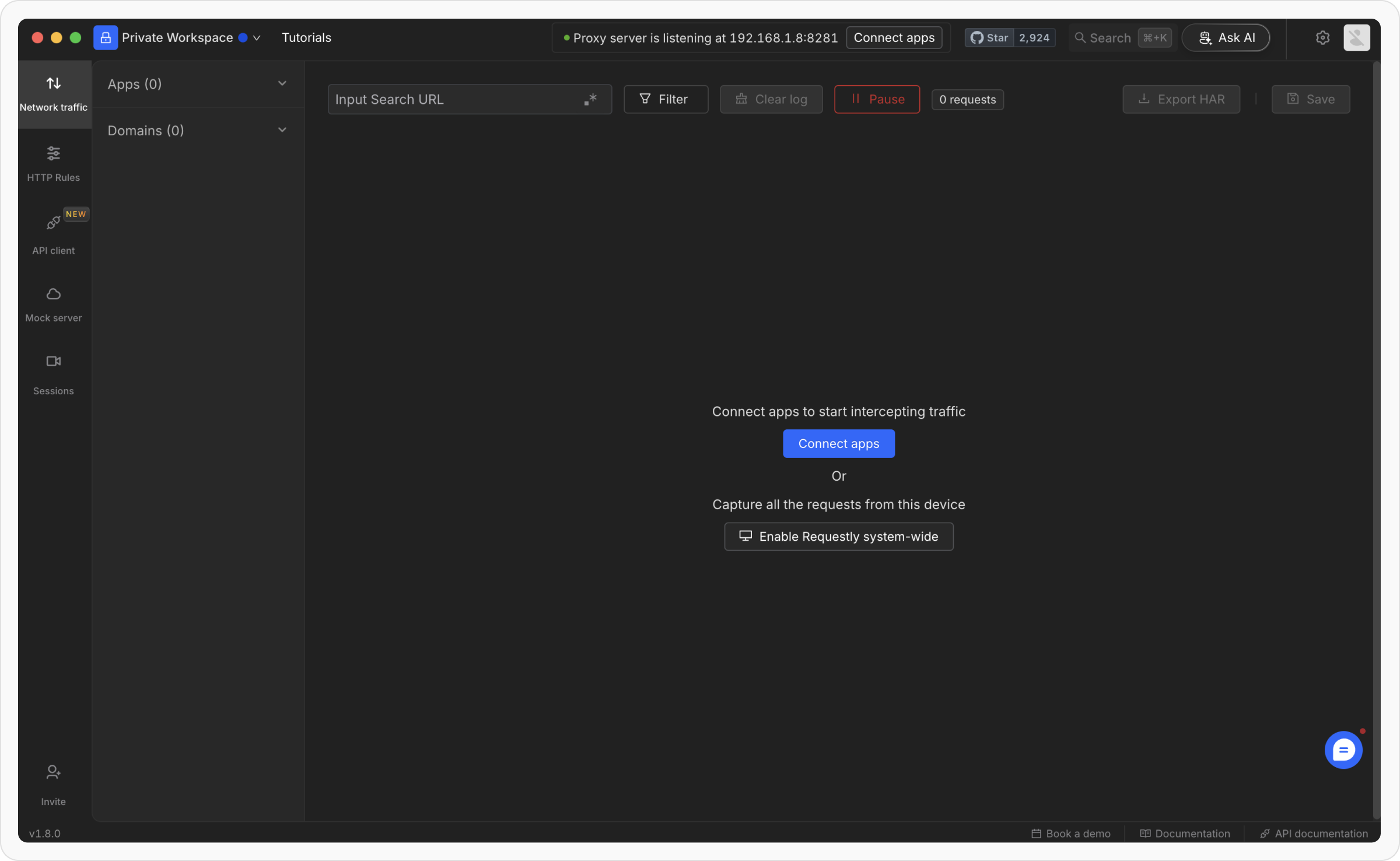 Go to the Requestly desktop app and click on the Connect apps button. A popup modal will appear.