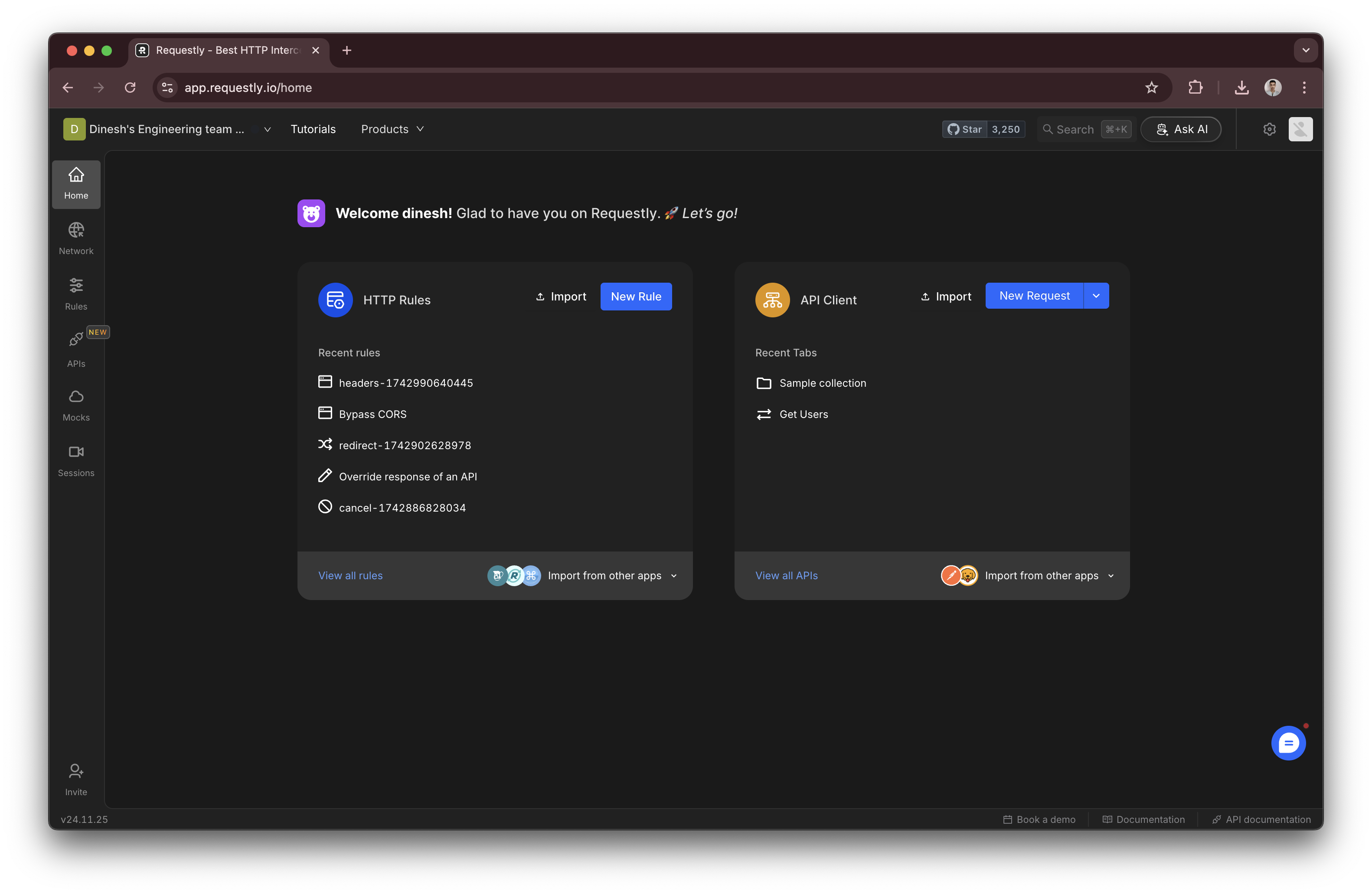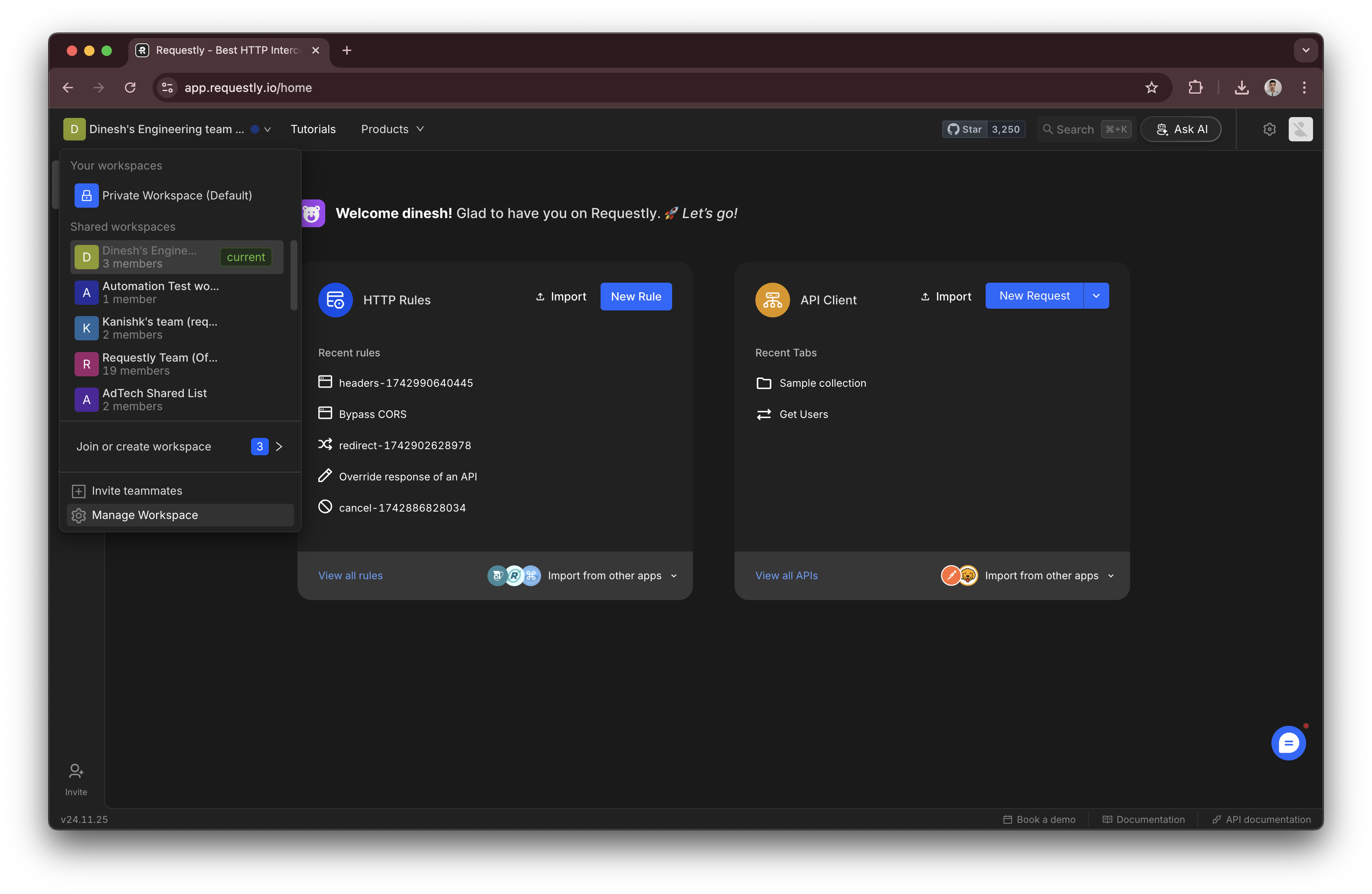 In the Requestly dashboard, locate and click on your workspace name at the top.