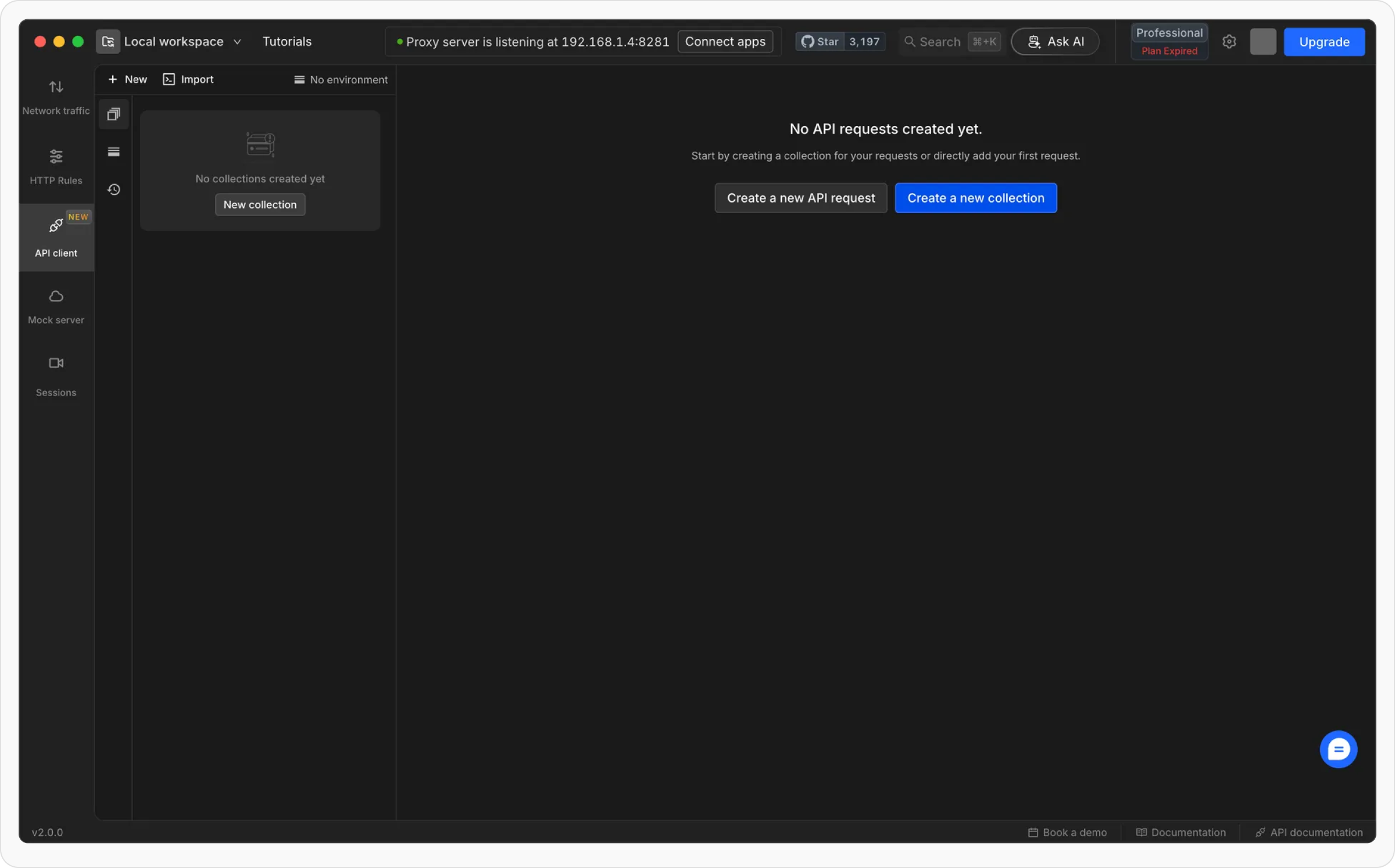 Select “Local Workspace” as the workspace type. Enter a workspace name and choose a folder where all configurations and API data will be stored.