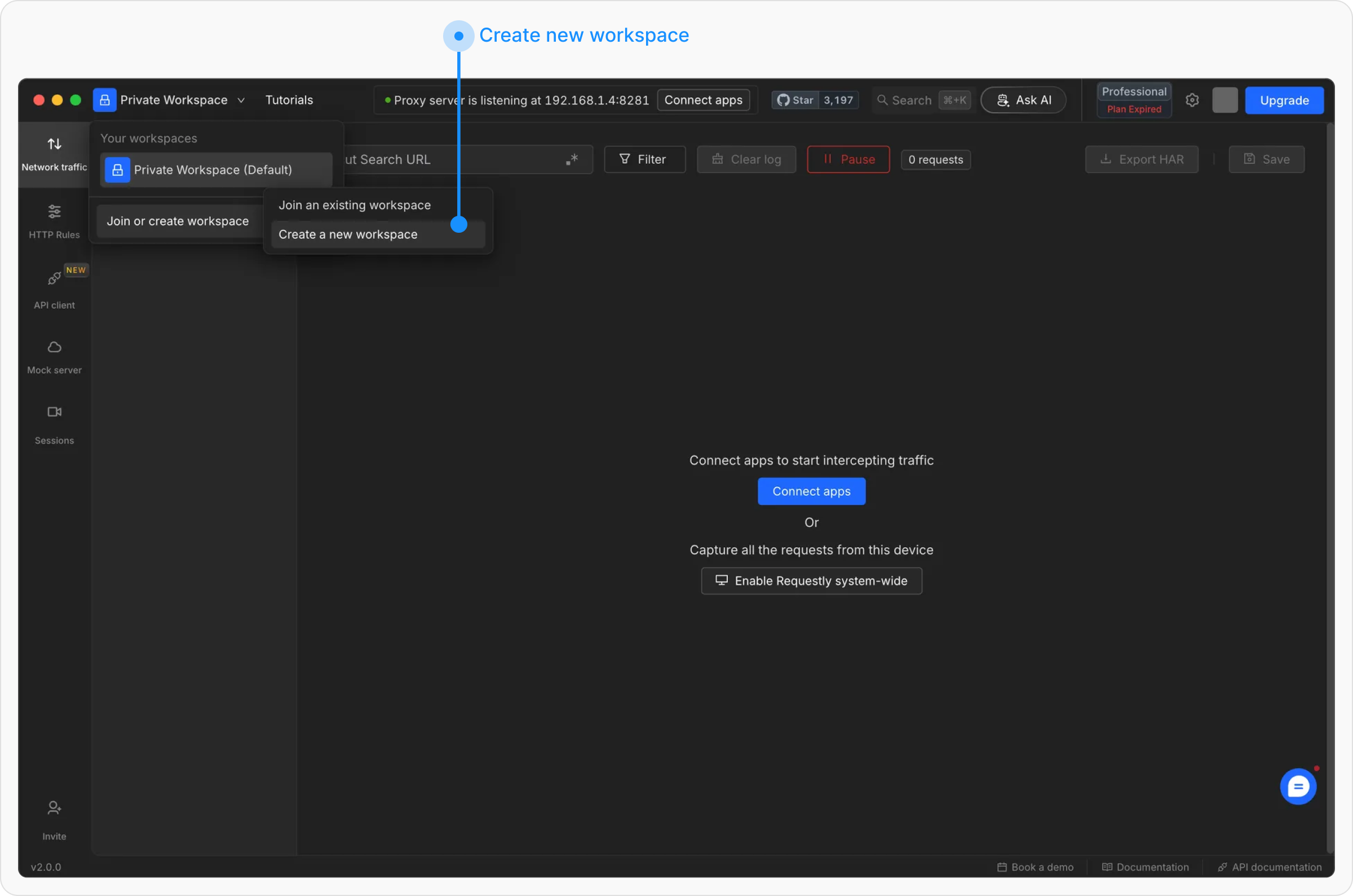 In the dropdown, click on “Join or Create Workspace” to access the workspace creation options, then select “Create Workspace” to start the setup