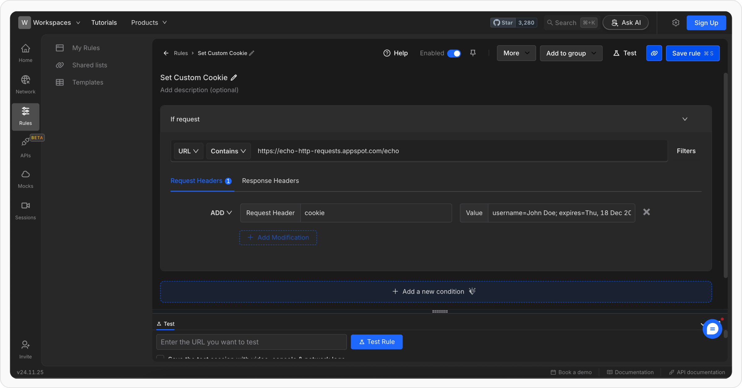 Give your rule a clear name like Set Custom Cookie. Optionally, add a short description so you can easily identify its purpose later.