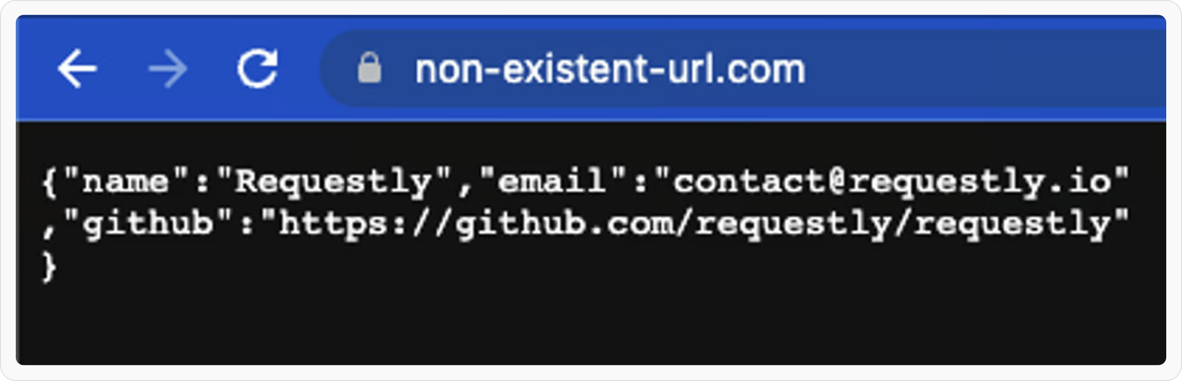 This example changes the response of a non-existent domain (https://non-existent-url.com) by fetching the response from another url (https://demo_requestly.requestly.dev/users/1)Rule: https://app.requestly.io/rules#sharedList/1677766334864-Async-Modification-Changing-response-of-non-existent-domain-programmatically